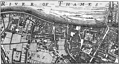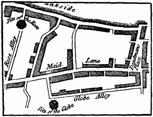 MAP OF LONDON SHOWING THE PLAYHOUSES