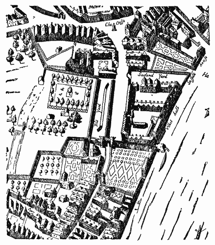 [657] This had once already, on Shrove Tuesday, 1604, been used for a play. The situation and ground-plan of the "Great Hall" are clearly shown in Fisher's Survey of the palace, made about 1670, and engraved by Vertue, 1747.