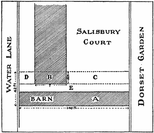 [655] The subsequent history of Salisbury Court is traced in the legal documents printed by Cunningham. Beeston lost the property, and Fisher and Silver erected nearer the river a handsome new playhouse, known as "The Duke's Theatre," at an estimated cost of £1000.
