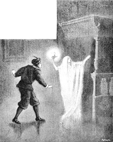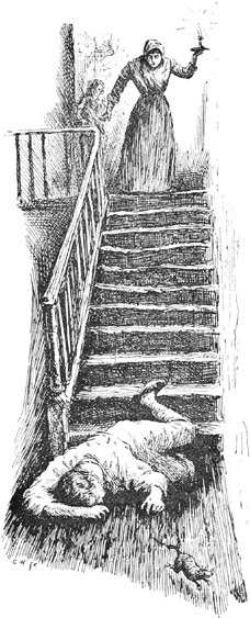 By the side of the dead wall which bounded the College Park, the sounds followed, recommencing[12] almost simultaneously with his own steps. The same unequal pace, sometimes slow, sometimes, for a score yards or so, quickened to a run, was audible from behind him. Again and again he turned, quickly and stealthily he glanced over his shoulder almost at every half-dozen steps; but no one was visible. The horrors of this intangible and unseen persecution became gradually all but intolerable; and when at last he reached his home his nerves were strung to such a pitch of excitement that he could not rest, and did not attempt even to lie down until after the daylight had broken.
