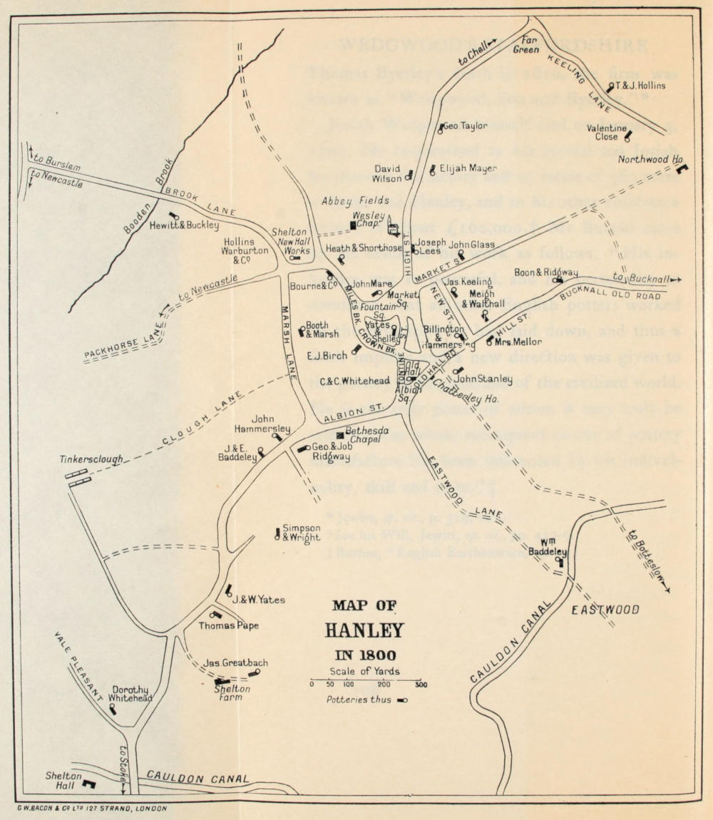 Both to him and to Professor Church, M. Solon[xi] and to many others, who have given me so much personal assistance in this work, I desire to express my gratitude. I can only regret that my own contribution to original research on the subject has been confined to the Tunstall Court Rolls, kindly lent me by Mr Sneyd, and to the MSS of my great-great-grandfather, Josiah Wedgwood, now in the museum of the Wedgwood firm at Etruria. Lastly I would express my indebtedness to my brother Frank Wedgwood, who has read through the proofs and made many corrections, such as would occur to one whose whole life has been devoted to the practice of the art of potting.