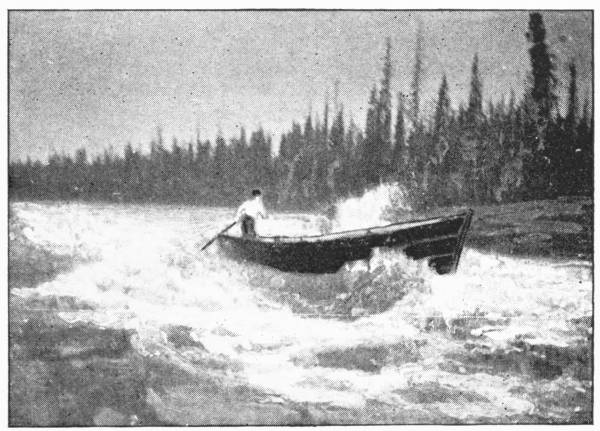However, all this was only the froth and excitement of the moment. The captain hauled his[34] boat out of the breakers, skillfully launched it again, and came on board, shivering but calm, a strapping, reckless Cape Breton Scotch-Canadian. In due course of time afterwards the scow was also got out, and we transferred our outfits to it and sat on top of them, while we were slowly propelled ashore by long oars.