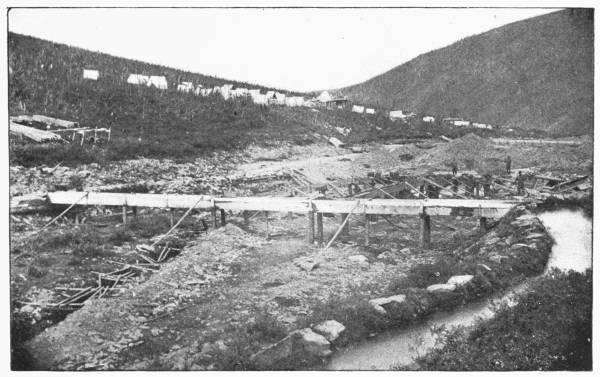 At this time there was only one building at Dyea—a log house used as a store for trading with the natives, and known by the name of Healy's Post. (Two years afterwards, on returning to the place, I found a mushroom, sawed-board town of several thousand people; but that was after the Klondike boom.) We pitched our tents near the shore that night, spreading our blankets on the ground.