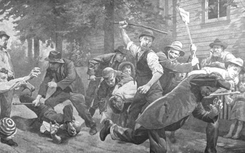 Timber: a clubbing at the hands of the toughs of a town unfriendly[Pg 398] to tramps. (See "Saps.")