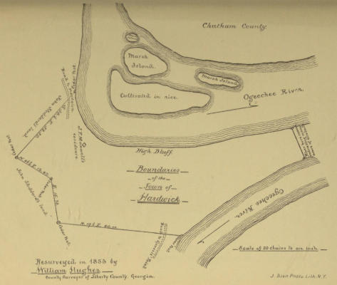 On the 18th of February, 1796, the Legislature of Georgia[36] appointed Jeremiah Cuyler, John G. Neidlinger, Jonathan Rawhn, Elias Hodges, and John Martin Dasher “commissioners for the town and common of Ebenezer,” with instructions to have the town “surveyed and laid out as nearly as possible in conformity to the original plan thereof, to sell all vacant lots, and such as had become vested in the State, [reserving such only as were necessary for public uses,] and appropriate the proceeds to the erection of a County Court House and Jail.” Any over-plus was to be applied to building a public Academy. For three years only did Ebenezer remain the County Town of Effingham County. In 1799, its public buildings were sold, and the village of Springfield was designated by the Legislature as “the permanent seat for the public buildings of the County of[42] Effingham.”[37] David Hall, Joshua Loper, Samuel Ryals, Godhelf Smith, and Drurias Garrison were appointed commissioners to carry this change into effect.