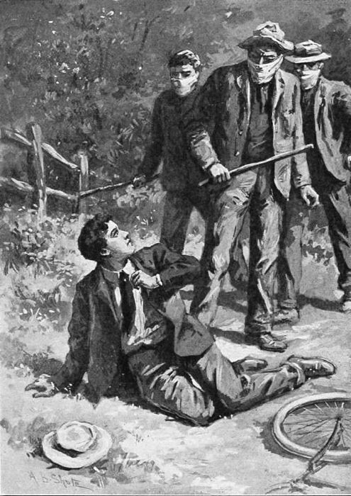 Still smarting from the blow received, our hero staggered to the door and unlocked it. At once Mark and the remaining officer came into the room. The officer rushed to the window while Mark ran to Frank’s assistance.