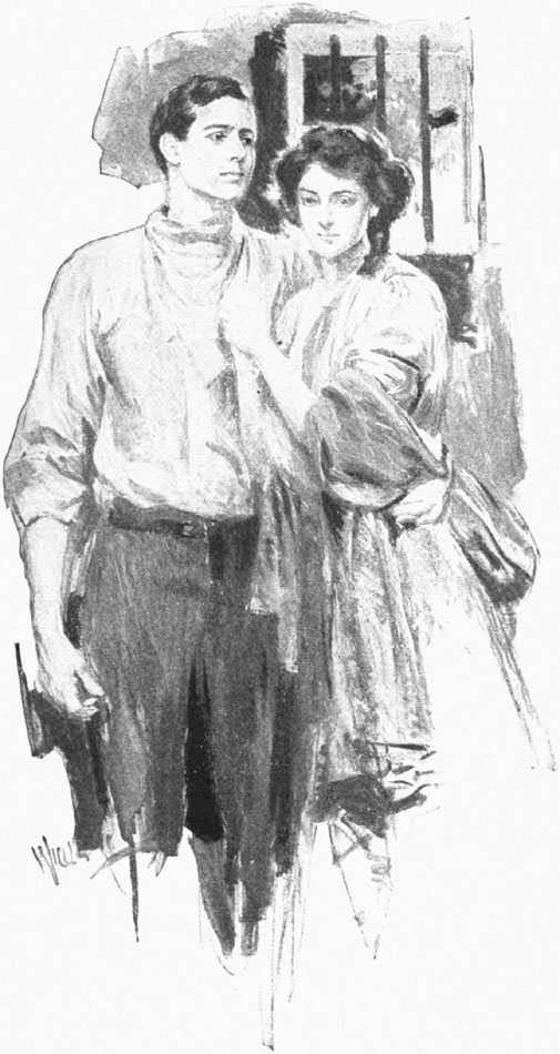 [316]She stood at the window and watched the boy enter the jail. He stayed an interminable time! Each tick of the tiny watch in her hand seemed an hour. One minute, two, three, four, five minutes slowly dragged. Merciful God, would he never return? A thousand questions began to strangle her. Had Wolf suspected and played with her? Had the jailer recognized the trick and arrested the boy? Had Wolf discovered the boy's absence from his post?