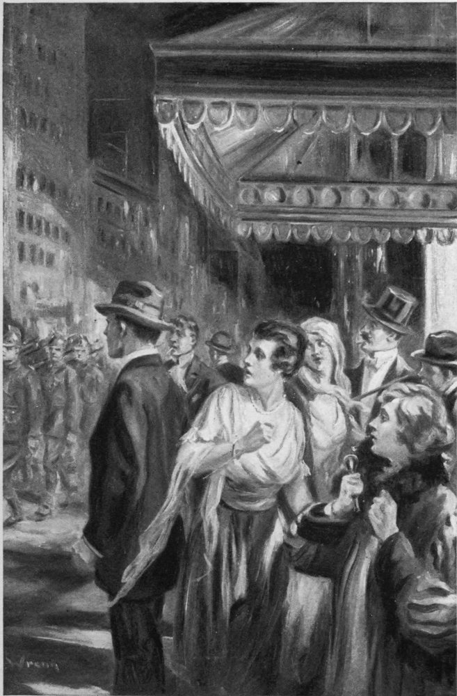 Virginia’s left hand clasped the glass, her right was lifted with nervous intensity giving the sign of the Daughters of Jael to Marya whose hand was on the electric switch. The searchlight on the Madison Square tower flashed and every whistle in the city and harbor screamed its tribute.
