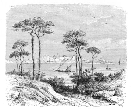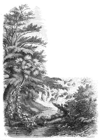 "My father resided at no great distance from the town, in a very pleasant mansion, which he had purchased, built, and surrounded by plantations, in the hope that the charms of the spot might console his young wife for the sublime American nature she had recently quitted. The house, well exposed on the east and south, saw the morning sun rise on a vine-clad slope, and turn, before its meridian heats, towards the [Pg 21] remote summits of the Pyrenees, which were visible in clear weather. The young elm-trees of our own France, mingled with American acacias, rose-laurels, and young cypresses, interrupted its full flood of light, and transmitted to us a softened radiance.