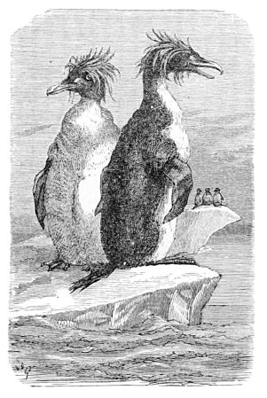 The guillemot of the north (mergula), which fears above all things the fox, on account of his partiality for her eggs, builds her nest on a rock level with the water, so that, no sooner are they hatched than the brood, however closely dogged by the plunderer, have time to escape in the waves. On the other hand, here, on our coasts, where her only enemy is man, she makes her nest on the loftiest and most precipitous cliffs, where man can with difficulty reach it.