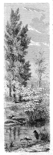 Man or no man, the eagle had reigned on his Alpine throne. The swallow would not the less have performed her yearly migration. The frigate bird,[5] unseen by human eyes, had still hovered over the [Pg 18] lonely ocean-waters. Without waiting for human listeners, and with all the greater security, the nightingale had still chanted in the forest his sublime hymn. And for whom? For her whom he loves, for his offspring, for the woodlands, and, finally, for himself, his most fastidious auditor.