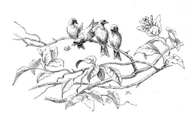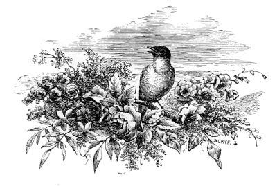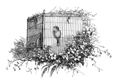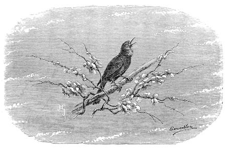 To-day even, in a place infinitely unpoetic, neglected, squalid, and obscure, among the black mud of Paris, and in the dank darkness of an apartment scarcely better than a cavern, I saw, and I heard chirping, in a subdued voice, a little creature which seemed not to belong to this low world. It was a warbler, and one of a common species—not the blackcap, which is prized so highly for his song. This one was not then singing; she chattered to herself, just a few notes, as monotonous as her situation. For winter, shadow, captivity, all were around her. The captive of a rough, rude man, of a speculator in birds, she heard on every side sounds which silenced her song; powerful voices were above her head, a mocking-bird among them, which rang out every moment their brilliant clarions. Generally, she would be condemned to silence. She was accustomed, one could perceive, to sing in a low tone. But in this limited flight, this habitual resignation and half lamentation, might be detected a charming delicacy, a more than feminine softness (morbidezza). Add to this the unique grace of her bosom and her motions, of her modest red and white attire, which sparkled, however, with a bright sheeny reflex.