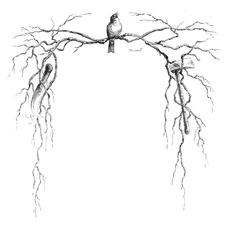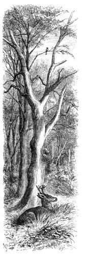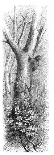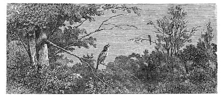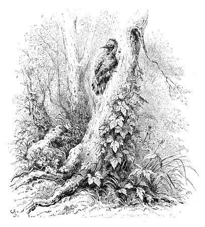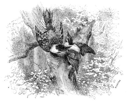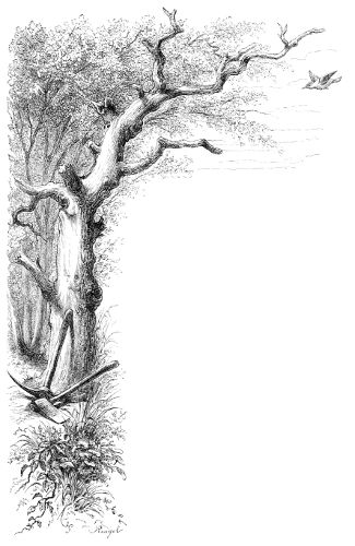 "The woodpecker is a favoured bird in the steppes of Poland and Russia. In these sparsely wooded plains he constantly directs his course towards the trees; by following him, you discover a hidden ravine, a little later some springs, and finally descend towards the river. Under the bird's guidance you may thus explore and reconnoitre the country." (Mickiewicz, Les Slaves, vol. i., p. 200.)