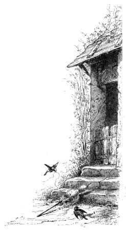 Am I saying that we have had no other assistance? To make [Pg 14] such a statement would be unjust, ungrateful. The domesticated swallows which lodged under our roof mingled in our conversation. The homely robin, fluttering around me, interjected his tender notes, and sometimes the nightingale suspended it by her solemn music.