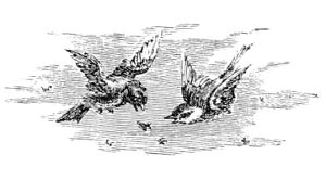 If, by the side of these proofs of the multiplication of insects, even [Pg 331] in temperate or cold countries, we put the fact that the swallow is not satisfied with less than one thousand flies per diem; that a couple of sparrows carry home to their young four thousand three hundred caterpillars or beetles weekly; a tomtit three hundred daily; we see at once the evil and the remedy. We quote these figures from M. Quatrefages (Souvenirs), and from a letter written by Mr. Walter Trevelyan to the editor of "The Birds of Great Britain," translated in the Revue Britannique, July 7, 1850.