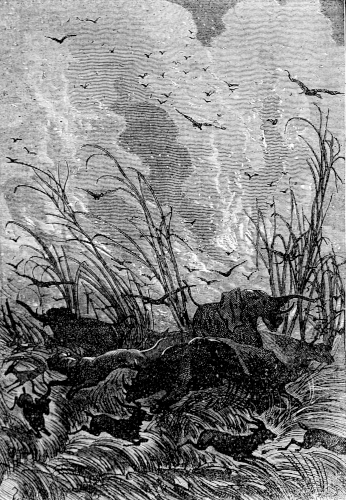 William Emery did not hesitate to believe his companion's assertion, for he knew that the hunter was endowed with great delicacy of sense, whether he used his eyes, nose, or ears. Mokoum climbed up the bank again, and they determined to wait in that place, as they could easily see down the river from there. Half an hour passed, which to Emery, in spite of his calmness, appeared interminable. Ever so many times he fancied he saw the dim outline of a boat gliding along the water, but he was always mistaken. At last an exclamation from the bushman made his heart leap.