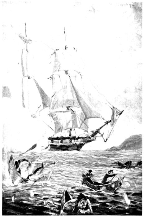 Just as the ship, coming under full sail into the arm of the sea, was off Shark’s Island, she joined her heavy guns to those of the battery. Most of the pirogues failed to escape the rain of shot and shell, and only two succeeded in vanishing behind the cape, never to return.