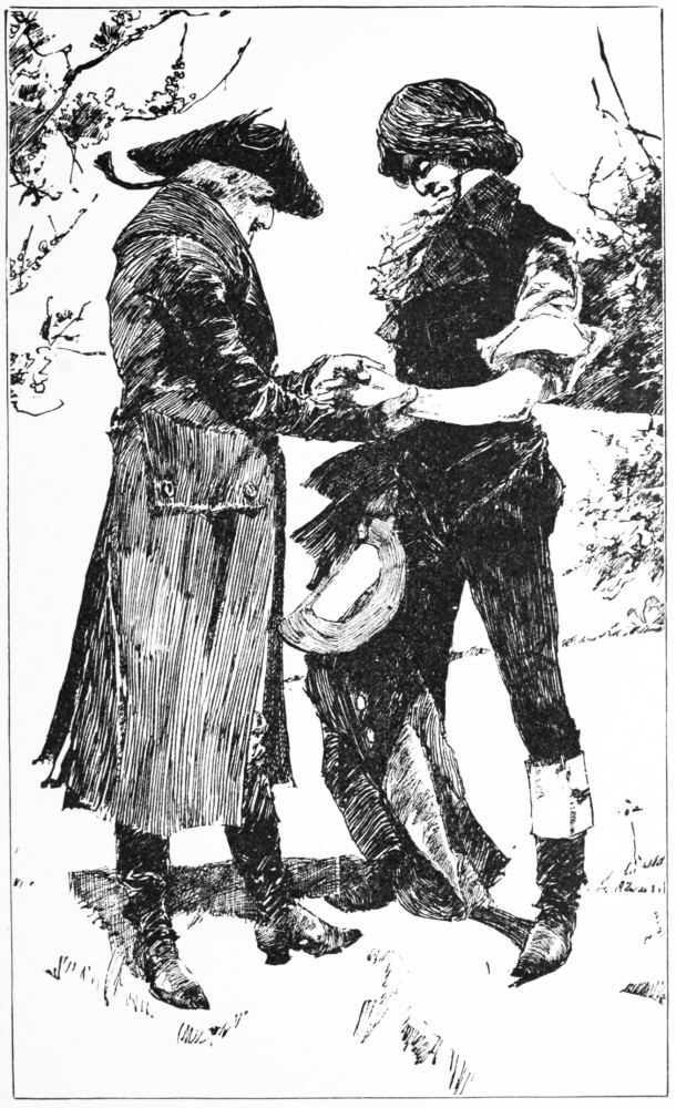 “In the name of decency, no! To avoid trouble, I have long carried my wardrobe on my back, and ’twould never do to enter London with a shirt only. Better a broken bone than a wounded coat sleeve—ha! well, this is for my sins, I suppose. I wish Providence would keep the punishment till all the sins are done—this piecemeal retribution is the devil. Well, now for it! Sir, I wish you were less humane—my flesh and bones cry out against your humanity. Dryden was wrong, confound him! Pity is akin to—to—whew!—to the Inquisition. God Apollo! shall I ever write poetry after this? And ’tis only a left arm, after all!—not to be left alone, however—ah!... A thousand thanks, sir; but you leave me ten years older than you found me. Our acquaintance has been a long and (candor compels me to say) a confoundedly painful one. To be serious, I am heartily indebted to you.”