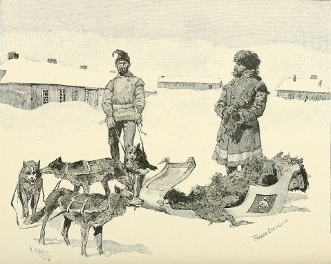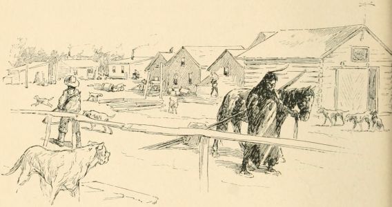 The sun blazed down on the great camp that afternoon and glorified the place so that it looked like a miniature Switzerland of snowy peaks. But it was hot, and blankets were stretched from the tent tops, and the women sat under them to catch the air and escape the heat. The salaried native policeman of the reserve, wearing a white stove-pipe hat with feathers, and a ridiculous blue coat, and Heaven alone knows what other absurdities, rode around, boasting of deeds he never performed, while a white cur made him all the more ridiculous by chasing him and yelping at his horse's tail.