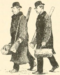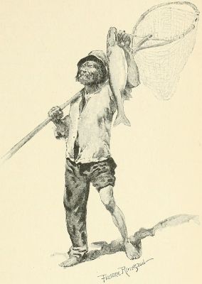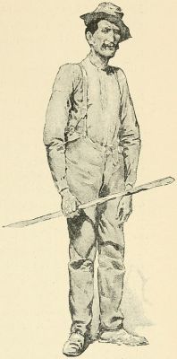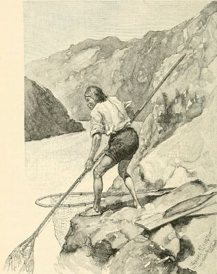 It would be difficult to draw a parallel between these laborers and any class or condition of men in the East. They were of every nationality where news of gold-mines, of free settlers' sections, or of quick fortunes in the New World had penetrated. I recognized Greeks, Finns, Hungarians, Danes, Scotch, English, Irish, and Italians among them. Not a man exhibited a coat, and all were tanned brown, and were as spare and slender as excessively hard work can make a man. There was not a superfluity or an ornament in sight as they walked past me; not a necktie, a finger-ring, nor a watch-chain. There were some very intelligent faces and one or two fine ones in the band. Two typical old-fashioned prospectors especially attracted me. They were evidently of gentle birth, but time and exposure had bent them, and silvered their long, unkempt locks. Worse than all, it had planted in their faces a blended expression of sadness a[324]nd hope fatigued that was painful to see. It is the brand that is on every old prospector's face. A very few of the men were young fellows of thirty, or even within the twenties. Their youth impelled them to break away from the table earlier than the others, and, seizing their rods, to start off for the fishing in the river.