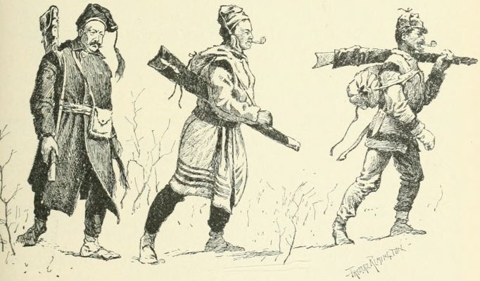 As the old chief crushed the bunch-grass beneath his gaudy moccasins at the time I saw him, and as his lesser chiefs and headmen strode behind him, we who looked on knew what a great part he was bearing and had taken in Canada. He had been chief of the most powerful and savage tribe in the North, and of several allied tribes as well, from the time when the region west of the Mississippi was terra incognita to all except a few fur traders and priests. His warriors ruled the Canadian wilderness, keeping the Ojibbeways and Crees in the forests to the east and north, routing the Crows, the Stonies, and the Big-Bellies whenever they pleased, and yielding to no tribe they met except the Sioux to the southward in our territory. The first white man Crowfoot ever knew intimately was Father Lacombe, the noble old missionary, whose fame is now world-wide among scholars. The peaceful priest and the warrior chief became fast friends, and from the day when the white men first broke down the border and swarmed upon the plains, until at the last they ran what Crowfoot called their "fire-wagons" (locomotives) through his land, he followed the priest's counselling in most important matters. He treated with the authorities, and thereafter hindered his braves from murder, massacre, and warfare. Better than that, during the Riel rebellion he more than any other man, or twenty men, kept t[14]he red man of the plains at peace when the French half-breeds, led by their mentally irresponsible disturber, rebelled against the Dominion authorities.