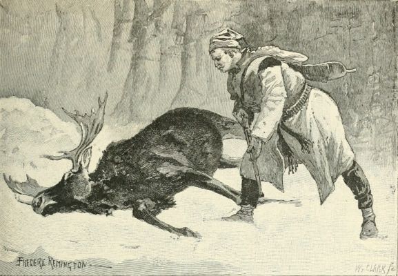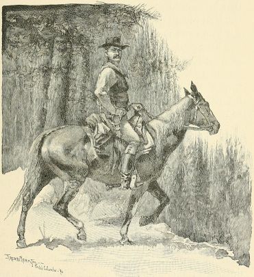 In Sproat's Landing we saw the nucleus of a railroad terminal point. The queer hotel was but little more peculiar than many of the people who gathered on the single street on pay-day to spend their hard-earned money up[297]on a great deal of illicit whiskey and a few rude necessaries from the limited stock on sale in the stores. There never had been any grave disorder there, yet the floating population was as motley a collection of the riffraff of the border as one could well imagine, and there was only one policeman to enforce the law in a territory the size of Rhode Island. He was quite a[298]s remarkable in his way as any other development of that embryotic civilization. His name was Jack Kirkup, and all who knew him spoke of him as being physically the most superb example of manhood in the Dominion. Six feet and three inches in height, with the chest, neck, and limbs of a giant, his three hundred pounds of weight were so exactly his complement as to give him the symmetry of an Apollo. He was good-looking, with the beauty of a round-faced, good-natured boy, and his thick hair fell in a cluster of ringlets over his forehead and upon his neck. No knight of Arthur's circle can have been more picturesque a figure in the forest than this "Jack." He was as neat as a dandy. He wore high boots and corduroy knickerbockers, a flannel shirt and a sack-coat, and rode his big bay horse with the ease and grace of a Skobeleff. He smoked like a fire of green brush, but had never tasted liquor in his life. In a dozen years he had slept more frequently in the open air, upon pebble beds or in trenches in the snow, than upon ordinary bedding, and he exhibited, in his graceful movements, his sparkling eyes and ruddy cheeks, his massive frame and his imperturbable good-nature, a degree of health and vigor that would seem insolent to the average New Yorker. Now that the railroad was building, he kept ever on the trail, along what was called "the right of way"—going from camp to camp to "jump" whiskey peddlers and gamblers and to quell disorder—except on pay-day, once a month, when he stayed at Sproat's Landing.