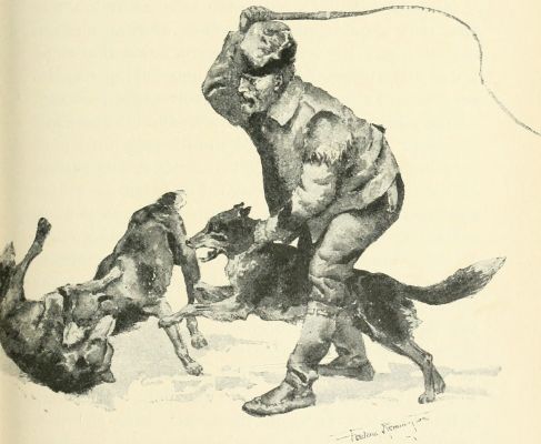 The news of our generosity ran from tent to tent, and the Black Soldier band sent out a herald to cry the news that a war-dance was to be held immediately. As immediately means to the Indian mind an indefinite and very enduring period, I amused myself by poking about the village, in tents and among groups of men or women, wherever chance led me. The herald rode from side to side of the enclosure, yelling like a New York fruit peddler. He was mounted on a bay pony, and was fantastically costumed with feathers and war-paint. Of course every man, woman, and child who had been in-doors, so to speak, now came out of the tepees, and a mighty bustle enlivened the scene. The worst thing about the camp was the abundance of snarling cur-dogs. It was not safe to walk about the camp without a cane or whip, on account of these dogs.