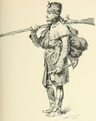 Over six feet in height, broad-chested, athletic, and carrying not an ounce of flesh that could be spared, Dan Dunn's was a striking figure even where physical strength was the most serviceable possession of every man. From never having given his personal appearance a thought—except during a brief period of courtship antecedent to the establishment of a home in old Ontario—he had so accustomed himself to unrestraint that his habitual attitude was that of a long-bladed jack-knife not fully opened. His long spare arms swung limberly before a long spare body set upon long spare legs. His costume was one that is never described in the advertisements of city clothiers. It consisted of a dust-coated slouch felt hat, which a dealer once sold for black, of a flannel shirt, of homespun trousers, of socks, and of heavy "brogans." In all, his dress was what the æsthetes of Mr. Wilde's day might have aptly termed a symphony in dust. His shoes and hat had acquired a mud-color, and his shirt and trousers were chosen because they originally possessed it. Yet Dan Dunn was distinctly a cleanly man, fond of frequent splashing in the camp toilet basins—the Kootenay River and its little rushing tributaries. He was not shaven. As a rule he is not, and yet at times he is, as it happens. I learned that on Sundays, when there was nothing to do except to go fishing, or to walk over to the engineer's camp for intellectual society, he felt the unconscious impulse of a forgotten training, and put on a coat. He even tied a black silk ribbon under his collar on such occasions, and if no one had given him a good cigar duri[319]ng the week, he took out his best pipe (which had been locked up, because whatever was not under lock and key was certain to be stolen in half an hour). Then he felt fitted, as he would say, "for a hard day's work at loafing."