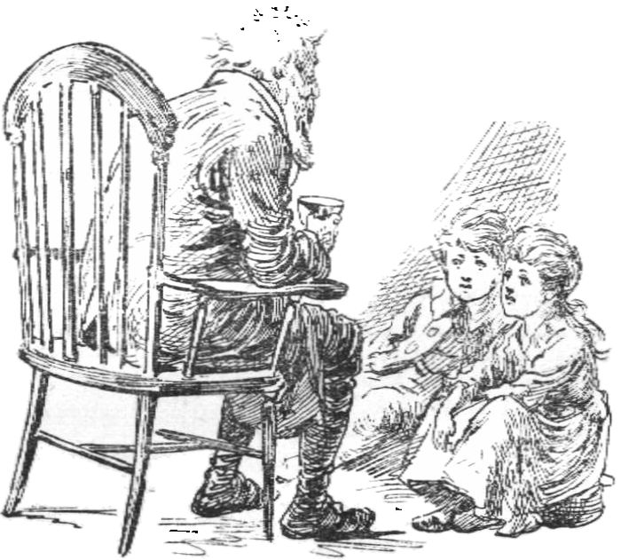 “We hovered on the outskirts of the rooms till four o’clock came. We sat on the stairs and watched the big clock, which I was just learning to read; and Patty made herself giddy with constantly looking up and counting the four strokes, towards which the hour hand slowly moved. We put our noses into the kitchen now and then, to smell the cakes and get warm, and anon we hung about the parlour door, and were most unjustly accused of trying to peep. What did we care what our mother was doing in the parlour?—we who had seen Old Father Christmas himself, and were expecting him back again every moment!