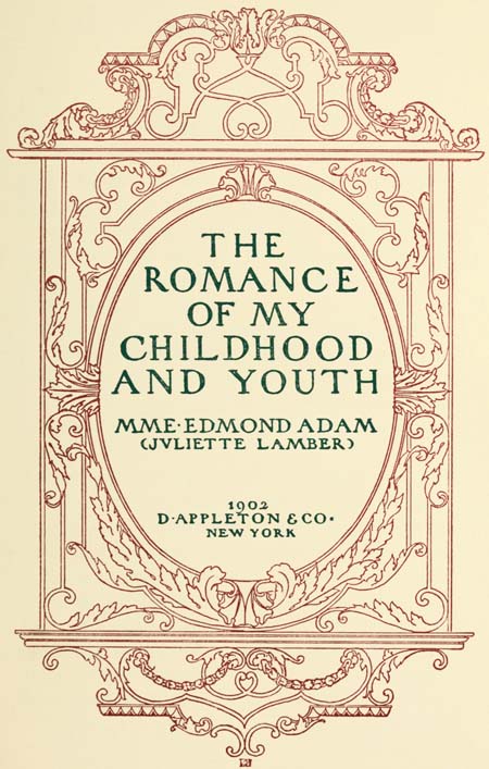 “All is over with the Republic, and through the fault of republicans themselves,” my father said, despairingly. “I hate in the same way those who have let themselves be conquered through weakness, and those who have conquered by brutality. And now they wish to sacrifice my daughter to I know not what idiotic dream of future celebrity. Juliette, Juliette, my child!” he cried, “I will protect you. You are my last refuge, my last hope—I cling to you!”