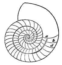 | 12. | Section of a chambered shell, showing the chambers and the siphuncle. | ||||