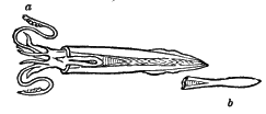 | 36. | b, Belemnite. a, Restored outline of the animal to which it belonged. [7] | ||||