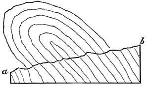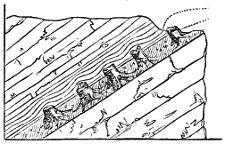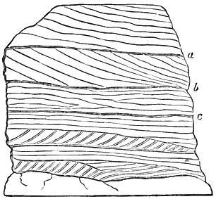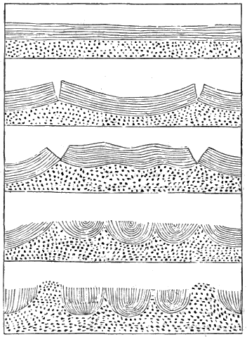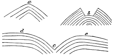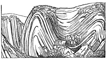 | 48. | Parallel planes of cleavage intersecting curved strata. (Sedgwick.) | ||||