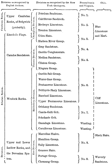 The following is a transcript of the Silurian System table on page 34 for those who are using screen readers.