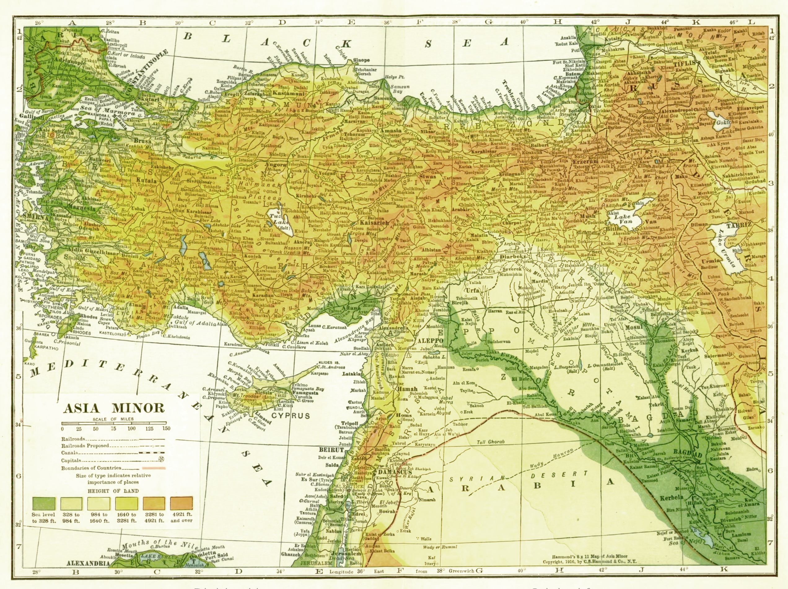 Its boundaries are, on the north, the Black Sea; on the east, the Russian frontier traversing the snow-covered mountain range of the Taurus and Antitaurus and continuing to the Gulf of Alexandretta; on the south, west and northwest, the Mediterranean, the Ægean Sea and the Sea of Marmora.