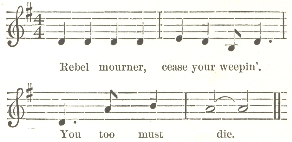 Anthony’s work would have puzzled a casual on-looker. Ten stout wires were stretched between two trees, fifteen or twenty feet apart, and each group of five represented the lines of the musical staff. Wooden bars crossed the wires at regular intervals, dividing the staff into measures. A box with many compartments sat on a stool beside him, and this held bits of wood that looked like pegs, but were in reality whole, half, quarter, and eighth notes, rests, flats, sharps, and the like. These were cleft in such a way that he could fit them on the wires almost as rapidly as his musical theme came to him, and Lyddy had learned to transcribe with pen and ink the music she found in wood and wire. He could write only simple airs in this way, but when he played them on the violin they were transported into a loftier region, such genius lay in the harmony, the arabesque, the delicate lacework of embroidery with which the tune was inwrought; now high, now low, now major, now minor, now sad, now gay, with one thrilling, haunting cadence recurring again and again, to be watched for, longed for, and greeted with a throb of delight.