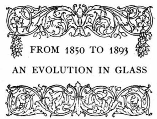 William L. Libbey was born in Portsmouth, New Hampshire, and became, in 1850, the confidential clerk of Jarves & Commeraiss, the greatest glass importers of Boston, and whose glass factory in South Boston was the forerunner of the Libbey Works of the Columbian Exposition. Having made a fortune—the fortune his clever son spent in art and bric-a-brac—Deming Jarves sold his glass factory to his trusted clerk in 1855, and for twenty years this Massachusetts industry gained strength and reputation. But the trend of population was westward.