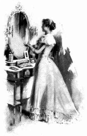The fame of that glass gown reached the ears of the Infanta Eulalia, who saw it worn by the ingenious actress and determined to inspect its counterpart set up in a case at the World's Fair. The Midway Plaisance was the Princess's favorite resort in Chicago, and she soon turned her steps toward the glass house she had heard so much about. "Where's that dress?" asked the Infanta as she entered the factory. On being conducted to it Eulalia expressed great pleasure, declaring it was the finest thing she had seen at the Fair.