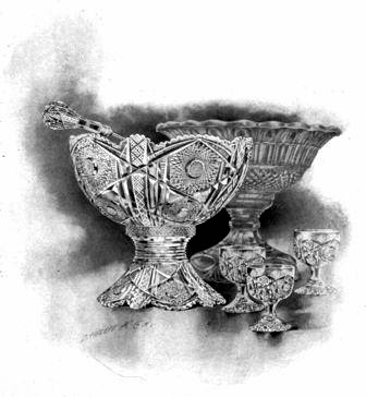 Do you recall the Crystal Art Room? Did you realize that under that ceiling, bedecked with ten thousand dollars' worth of spun glass cloth, was collected the finest display of cut glass the world had ever seen? Do you remember an old glass punch bowl, used in 1840 by Henry Clay, and that near this relic of ancient glassware was another[Pg 44] punch bowl upon which five hundred dollars' worth of labor had been bestowed?