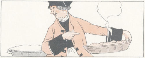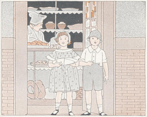 Construction. Let the children use building blocks to represent the baker’s shop with its show case and shelves where he sells his bread and cake and pies. His kitchen, too, is of great interest to children; if suitable arrangements can be made, take the class to visit a baker’s kitchen. After such a visit the baker’s kitchen and oven should be constructed; the children will doubtless find ways of making bread tins and long wooden shovels or paddles for taking bread from the oven.