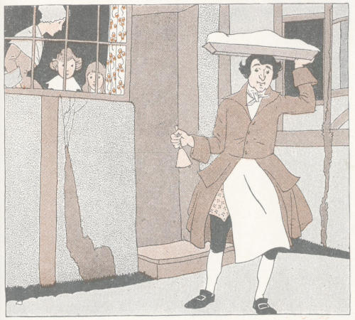 The shoemaker, and in fact all the characters included in this book, may be treated in a similar way. If something more permanent than block-building is desired, let the children bring small dry-goods boxes or boxes of cardboard or corrugated paper and fit them up for shops and stores. The furniture for such toy shops can be made of blocks of suitable size glued together, or by use of small cardboard boxes and[198] empty spools. Children are able to find ways and means of making such furniture, but they should not be deprived of the opportunity of seeing good forms made by others. At this period in the child’s life finished workmanship is not the aim. The product is of minor importance in comparison with the activity itself and its place in developing clear mental images.