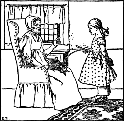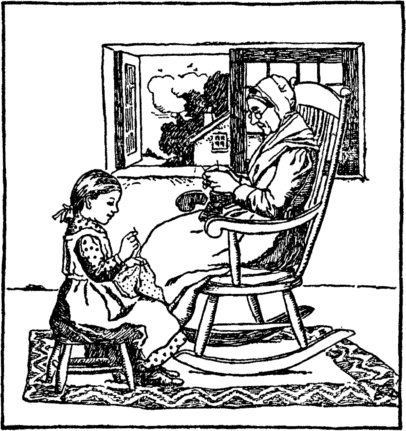 When nurse at last was sent for her, How glad was little Jane; She almost thought she never wished To romp or play again. "Oh! grandmamma, dear grandmamma, Indeed, indeed," said she, "If now you'll teach me how to sew A thankful child I'll be." |