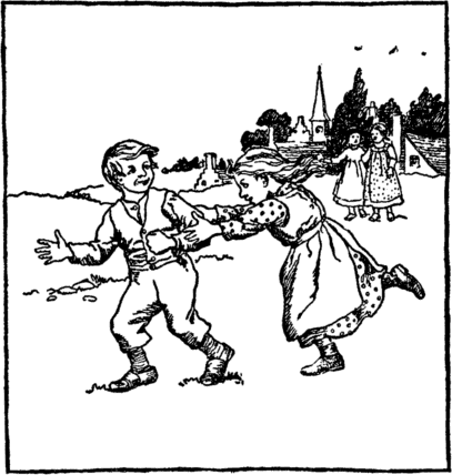 So with her frock all torn, into The room she had to go, And all the children wondering stared To see her looking so; Then when Jane played it caught her feet And almost made her fall; That shamed her so she ran away And tried to hide from all. |