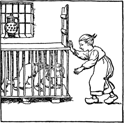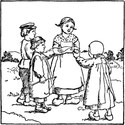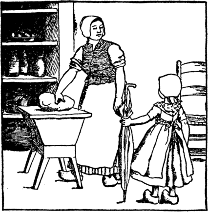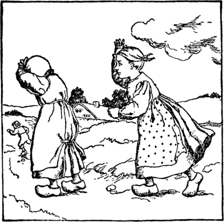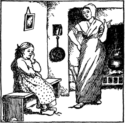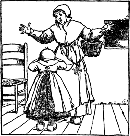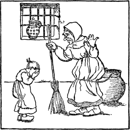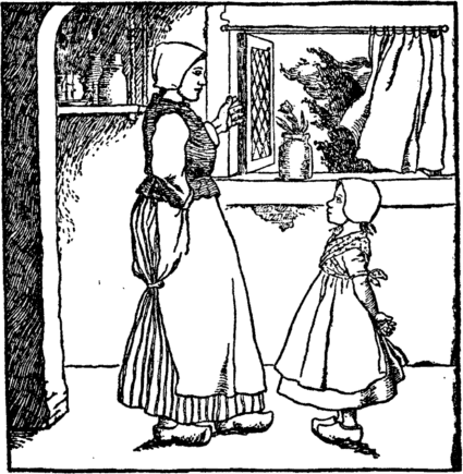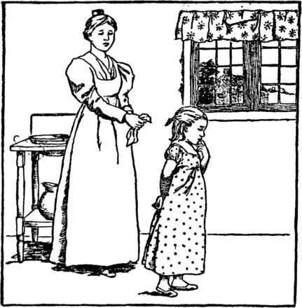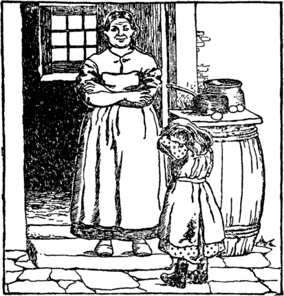 The beet tears melt her back once more Into the child she was before. She does not stay to wipe her eyes, But home with eager feet she hies. "Oh mother, mother dear," cries she, "Henceforth a cleaner child I'll be." |