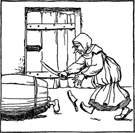 The children see a barrel near; "Quick! into it! The witch is here!" |