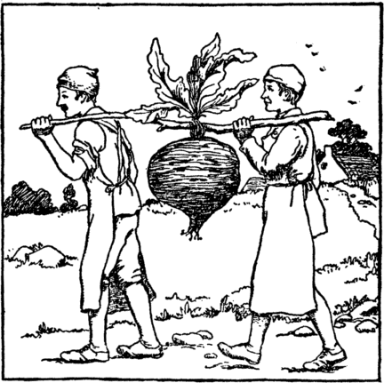 And now, by two stout boys, away They send the beet to town next day, That all the people there may see How large a beet can grow to be. They put her in a window there, Where every one can point and stare. |