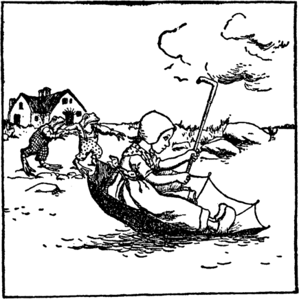 But Jane is quite too far away For them to catch her then, And when at last she drifts ashore She sees her home again. She rushes to her mother's arms With sobs and streaming eyes— "Oh mother, mother dear, forgive Your naughty Jane," she cries. |