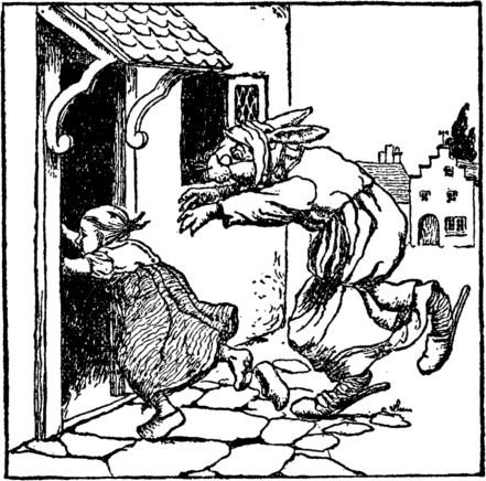 Her mother said, "Take care, my dear, The rabbit witch will come, I fear, And steal you one of these fine days, Unless you learn to mend your ways." |