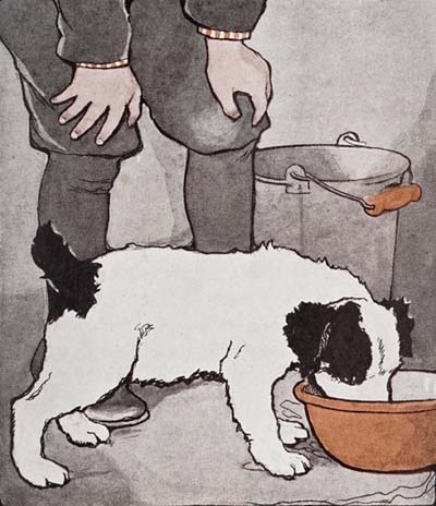 [11]All the while I was eating I kept wagging my tail to show him how pleased I was, and when I finished the last scrap I looked up in his face and licked my lips and grinned.