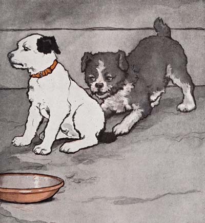 [6]A little farther down the street I met another puppy. He was just about my size and we made friends and had a fine play together, but someone opened a door near-by and called to him to come home, and he ran away and left me.